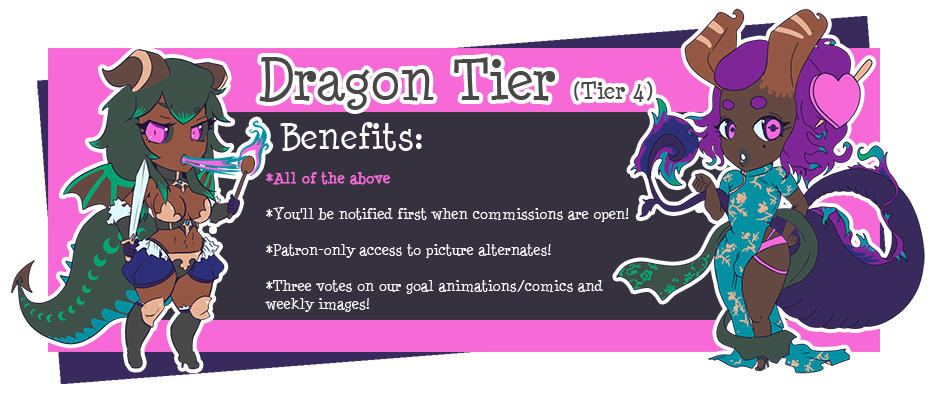 We've had plans to produce a full-fledged trap RPG for a long time. One of our hobbies is game development, and bringing that to the naughty realm would be good times for all around. As we both have game dev experience, this would not be an RPGmaker game - it would have (for an erotic game) fleshed out, homebrew mechanics and glorious romps, win or lose! Patrons would vote on order of implementation throughout the alpha and beta work, as well as alternate versions of the principal character, alternate modes, and what types of critters will appear.