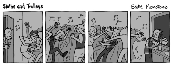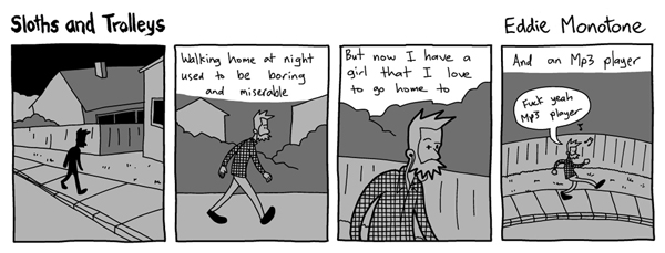 For a while now I've been making an ongoing autobiographical strip called Sloths and Trolleys, that chronicles the things that happen to me and around me.
