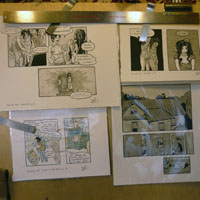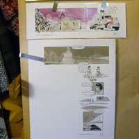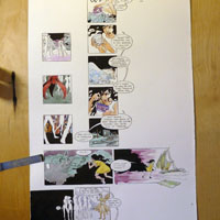 In highschool I once submitted a draft to a local comic publishing company, but they politely declined. I started making performable sequential art in 2004, mostly involving mechanisms with a high rate of fail and illustrations that require way too much patience on the part of an audience; I perform these and other artworks under the title Villainette. Failing Sky is my first graphic novel.