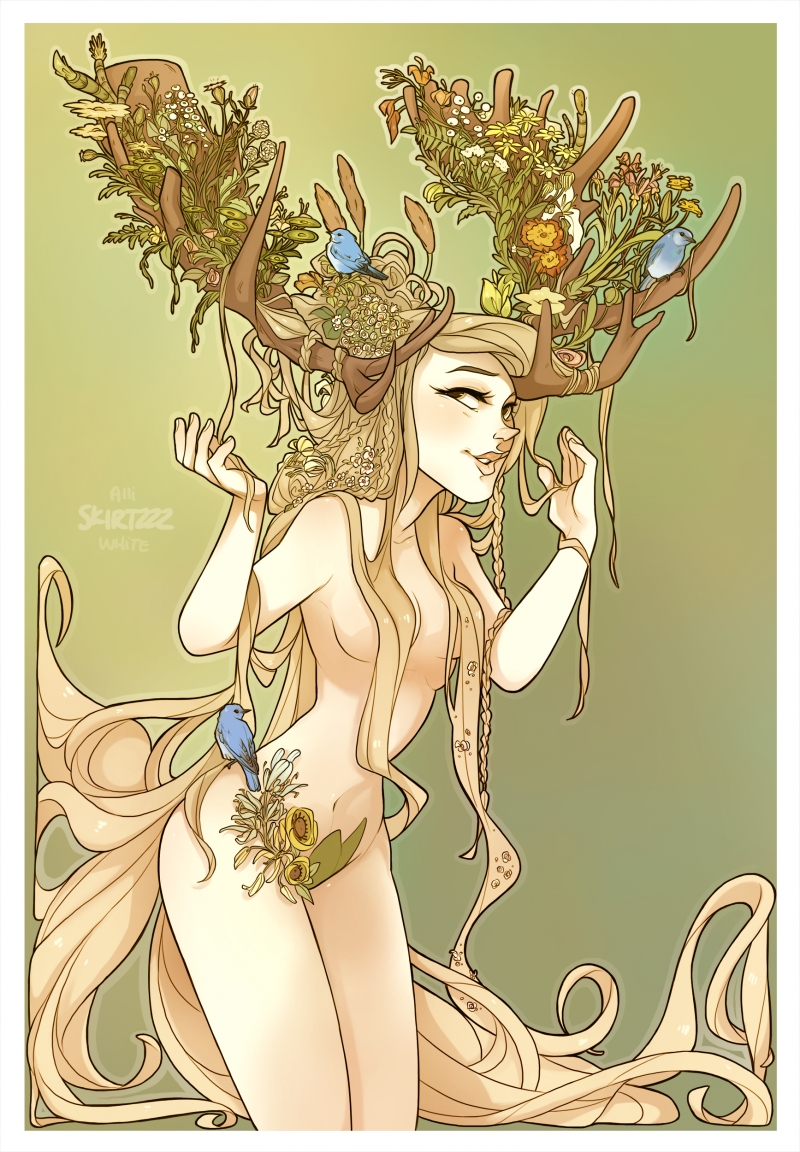 Up in the mountains where I live, I see a lot of wild animals- more often than people, to be honest! Some of my absolute favorite visitors are the moose (as long as we each keep our respected distance from one another, that is!). I see many deer/elk inspired fantasy girls, but never a moose! So, I had to pay homage to them in some way.