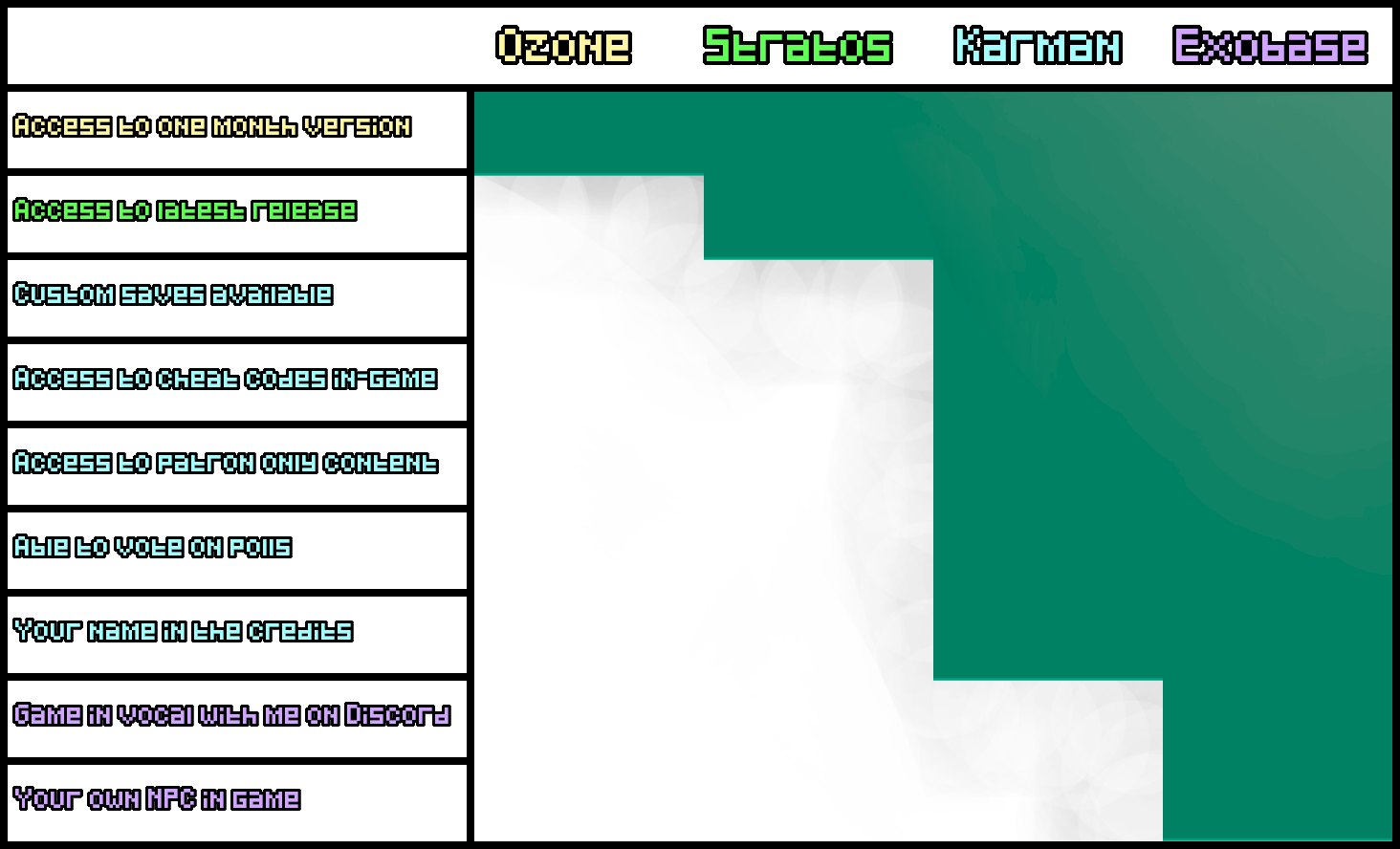 - Access to "Sunday News" posts, exclusive news during the game's dev