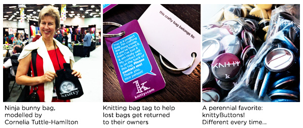 Next up, to repopulate the Knittyshop (currently offline) with shwag actually worth wearing. I was the sole Knittyshop designer from our launch in 2002 until recently, when I took an unbiased look at it and had to look away. It was dated and way too simplistic. It needs a new face and new awesome designs. Funds in this goal will also go to pay independent graphic designers an appropriate fee to come up with wonderful images that we can put on really cool stuff. (Things have gotten really awesome in the digital print-on-demand shwag world since we launched the first shop. Wait till you see what I have planned!)